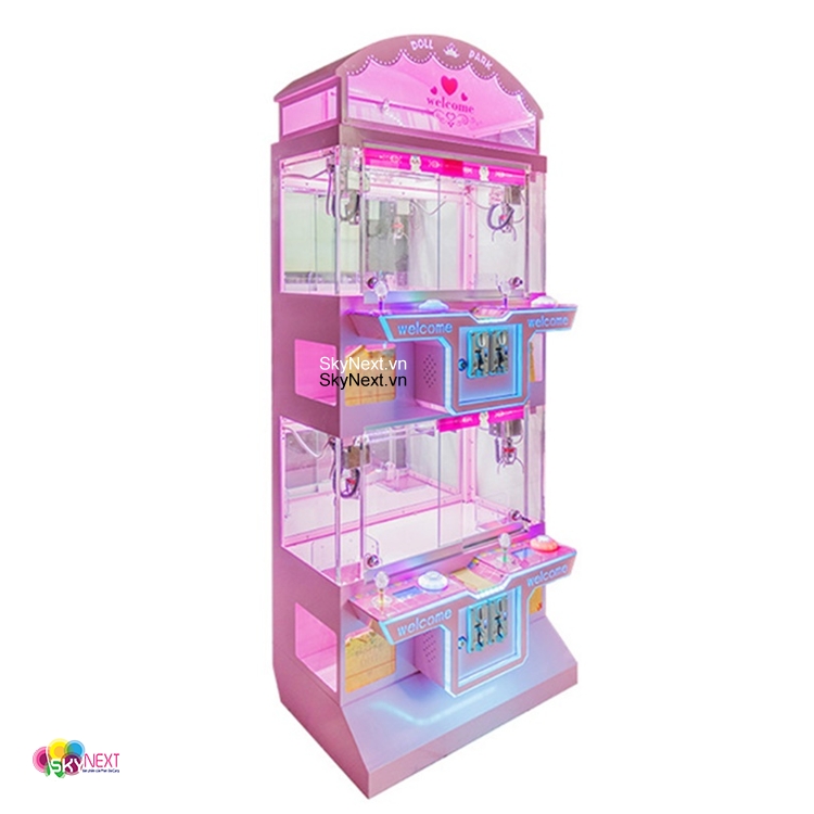 Máy game siêu thị gắp gấu 4 người chơi hồng candy